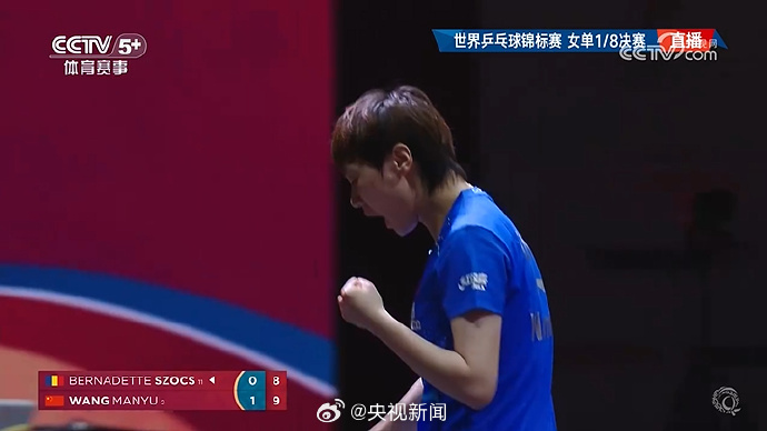 在世乒赛1/8比赛中,2号种子王曼昱直落四局,淘汰罗马尼亚选手伯纳黛特·斯佐科斯,晋级8强。四局比分为:11-6、12-10、11-5和11-6。