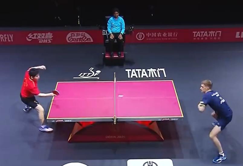 2025年多哈世乒赛男单1/8决赛中,5号种子、中国选手梁靖崑鏖战六局,最终以4-2淘汰英格兰选手汤姆·贾维斯,晋级8强。六局比分为:8-11、11-8、11-9、5-11、11-2和11-6。